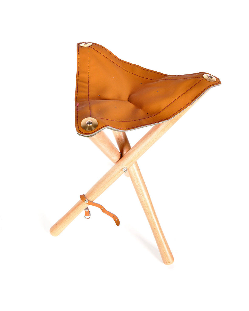 For the campsite, rest stop, or backyard, it's a simple wood stool of the highest order. Made from quality wood, leather, and brass.