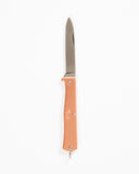 Otter-Messer, who has been manufacturing blades in Solingen since 1840, revived the manufacture of the Mercator pocket knife in 1995 when Heinrich Kaufmann & Sohne, Indiawerk went bankrupt. This version of Mercator is slimmer and shorter than the 'Kat.' It doesn't lock, but the construction is so tight, you can work with confidence knowing the blade isn't going anywhere. Plus: copper.