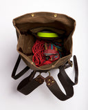 The bag is built from 18oz. waxed canvas, premium leather, and solid brass hardware. The bottom is double lined for puncture and moisture protection, and the whole thing is heavily stitched for real long-lasting construction. The Arrowhead Traill Rolltop is a solid choice, whether you're hitting the bike path or the mountainside.