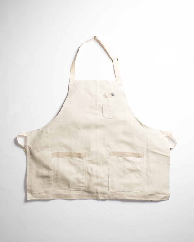 The Sandy apron has the same easy and comfortable appeal as burying your feet at the beach. It's made from a smooth inviting cotton-linen blend, inspired by sandy dunes, and ideal for good clean (dirty) fun in the garden or kitchen. Cut simple and short, it stays out of your way while you move and bend, but provides plenty of storage pockets and coverage for hand-wipers. We love the minimal style, the incredibly versatile (and flattering) cut, easy to adjust neck and waist bands, and impeccable quality. These aprons look and feel so lovely you'll be proud to make them part of your process.