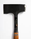 The Fireside Friend is a great companion for anyone with a lot of logs in their life, whether you're a consummate camper, back yard bonfire host or wood stove devotee. Think of it as the ideal blend of hatchet and maul, or maybe a wedge-hammer? The tough head and shaft are specially shaped and weighted to split through tough resistant woods, and the Special Edition stacked leather handle absorbs abuse so you don't have to. Being forged as a single piece of high quality steel, the Fireside Friend is unusually durable and keeps its edge well. The head and neck have a cool matte black protective coating to fight rust (and look super badass), and the shellacked leather handle is rebuildable... after you've used and abused it for a lifetime.