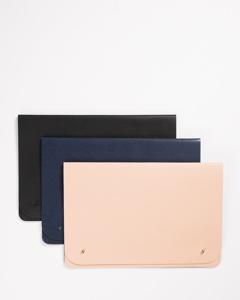 For your most beloved business tools, a simple and sleek ‘folio sans bulk and frivolous frills. Peg-in-hole fastenings and soft, quality polyurethane keep your goods safe and make for a delightful soft-to-touch carry. It looks good on your desk, in stride, or close to your cheek (because, again, it’s so soft). The Large Portfolio holds up to a 15” laptop and inner pockets hold your phone, pen, stylus, and post-meeting chocolates. Carry it, put it in your bag, and lock in a low-key (minimalist) impression.