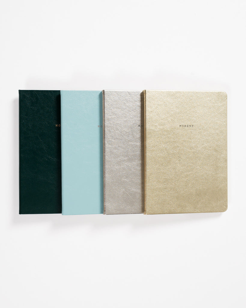 Take a moment and ask yourself if your planner is up to snuff. These beautiful Moment Planners are seriously attractive and flexibly fun at the same time. Covered in inviting faux leather, debossed with simple black or gold lettering, and filled with three different date-free calendar views to keep you stylishly organized no matter the month. Or season. Or year! It packs in yearly, monthly and daily options in a light gray ink, with a ribbon bookmark, globe views, graph and blank paper for personal use, and an undeniable gravitas as it graces your desk.