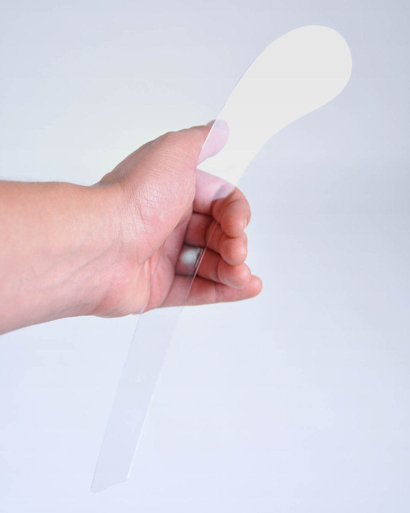 - Clear 0.06" thick plastic with finished edges