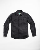 The Staple Shirt from Edgevale tacks together rugged functionality, a contemporary fit and the comfort of flannel. While deceptively soft, this heather black flannel is well suited for a hard day's work, it relaxes easily in campfire scenarios and even dresses up nicely... So nicely you could do those back to back and no one would guess your musky woodsman allure was so well-earned.