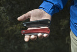 We appreciate the 1095 carbon steel blade, smooth pivot, tough reinforced joint, perfectly pinned handle, and durable distinctive Linen Micarta scales, or stunning orange Osage wood. A perfect do-it-all size for everything from camping to farm work to *target practice, in a super classic package.