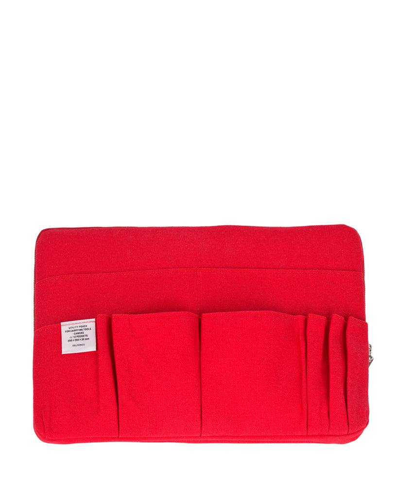 Laptop sleeve, canvas file folder, giant pocketproof wallet? Whatever you want to do with this mega-adorable canvas case, we won't judge. On the outside it's got three pencil pockets, three small pockets, four medium pockets of varied size, and one large pocket big enough for a notebook or folder. The double zippered compartment is lightly lined, with one internal pocket. It's big, it's red, it's got a ton of pockets. Made by the long-running Delfonics company, it's well thought out, simple and still distinctive.