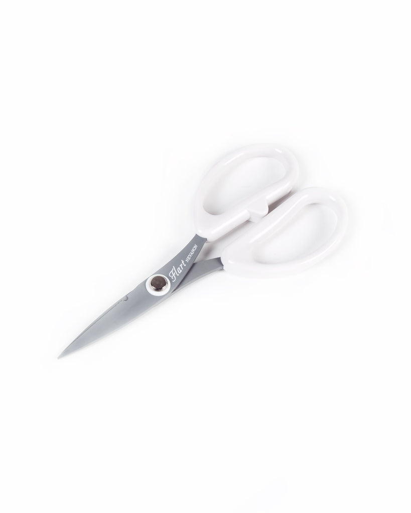 If the name "Silky Flart" doesn't make your heart go pitter patter (in a good way) you've clearly never used them. We are obsessed with these scissors. Their teflon coating, easy tight action and comfortable grip make them great for many tasks. Intended for use as floral scissors, they're easy to use for small dainty cutting but hold up fine to thicker and tougher materials like lighter leather and cardboard. One pair has been abused enthusiastically by our shipping department for months with no complaints on either end.