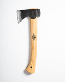 The Gränsfors Wildlife Hatchet is a traditional scouting and camping axe, with the same head as the Hand Hatchet but on a longer handle. This longer handle lends the axe more power, not least when felling trees. Practical for carrying in your rucksack when you need a small axe with plenty of power. The axe is capable of lopping off quite large branches or splitting small logs for the campfire. The shape of the sheath, which covers the edge and the top part of the poll, stops the axe head cutting into your rucksack.