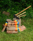 All steel in the axe is derived from recycled scrap metal. The handle is hickory, a particularly strong and flexible wood, which increases the life of the handle and thus helps reduce consumption of nature’s resources. The vegetable-tanned leather sheath is free from heavy metals and also is biodegradable.