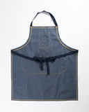 This navy stripe ticking is as stylish or simple as you want it, designed to let you focus on your own creations. It has a light smooth hand with a tough tight weave, light gold accent stitching, and will be comfortable and classic from the bar to the grill. As always, American made.
