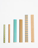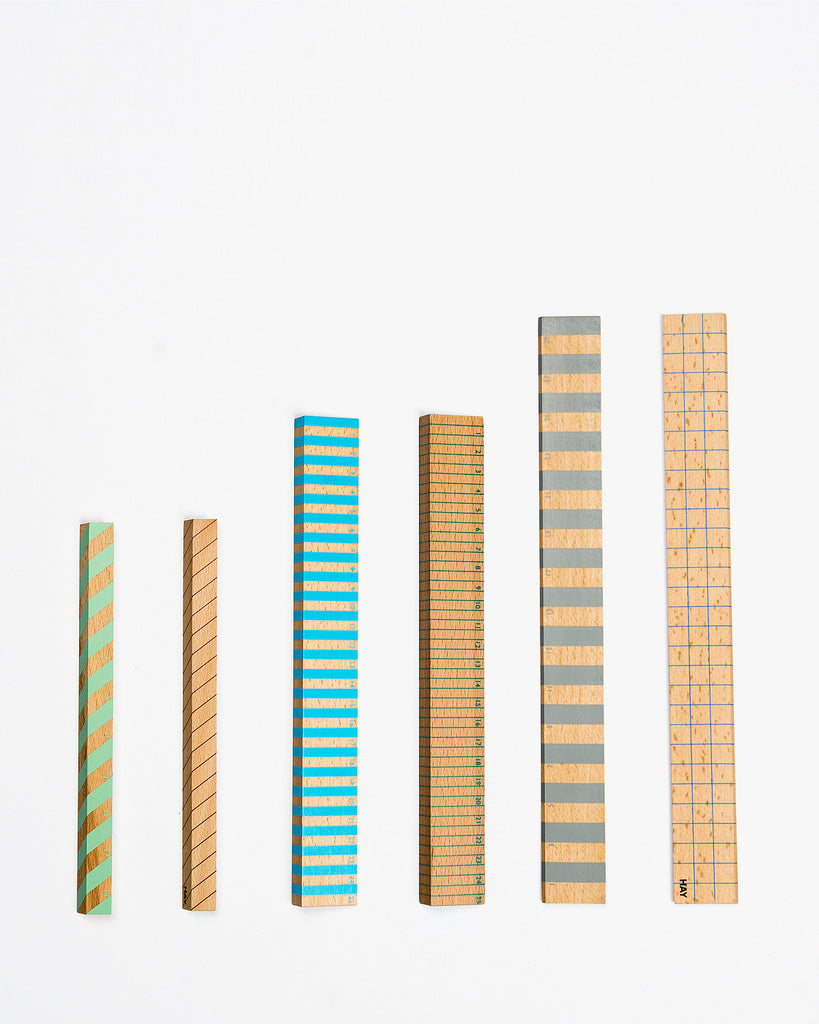 Hay’s wooden rulers are stiff, but definitely not square. They offer interesting shapes, unusually fun marking systems, stripes of modern color, pops of contrast color on the ends, and square meters of metric style. A tactile profile, clear beechwood grain, and inviting measurement graphics lets each of these high quality rulers double as desk decorations.