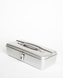 The newest sleek storage options from Trusco are in! This glimmering box features tough formed steel construction, smooth hinges, collapsible handle, a wide lockable clasp, and a subtle disco paint job. This mini version of the silver toolbox is a perfect small size for your vital hand tools, your finest art supplies, small sewing stuff, or a footlong sub. The paint job is great, with just enough subtle glitz to make your other tools jealous. All in all, a versatile and alluring trunk for your non-junk. (Or junk, we don't judge).