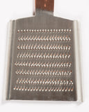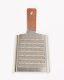 Not for the faint of heart of weak of wrist, a heavy-duty grater that will simply and efficiently shred hard radish and tough ginger, make a joke out of lime peel and cheese, and execute the ole dicing up your shoe sole party trick. Made from copper and aluminum, one side features large perforations and another features small, fine perforations for more precise grating. A simple, minimalist grater beautifully hand finished and adorned with Japanese characters, it looks good hanging, stored, or slicing up your must-have garnish or topping.