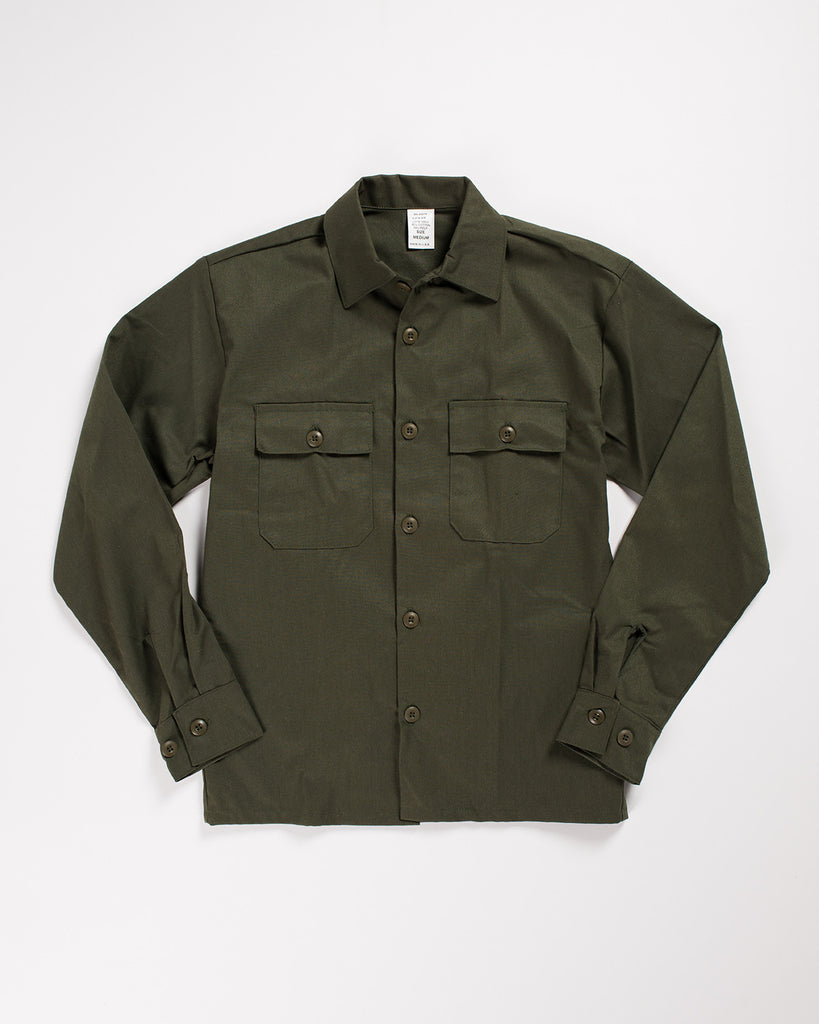 Stay green as the leaves turn gold (and red and orange and so on). Here's an absolutely zero-fuss army style shirt with loads of purpose and practicality. Throw this timeless shirt jacket on for easy style, a warm layer, and a couple pockets to store your stuff.