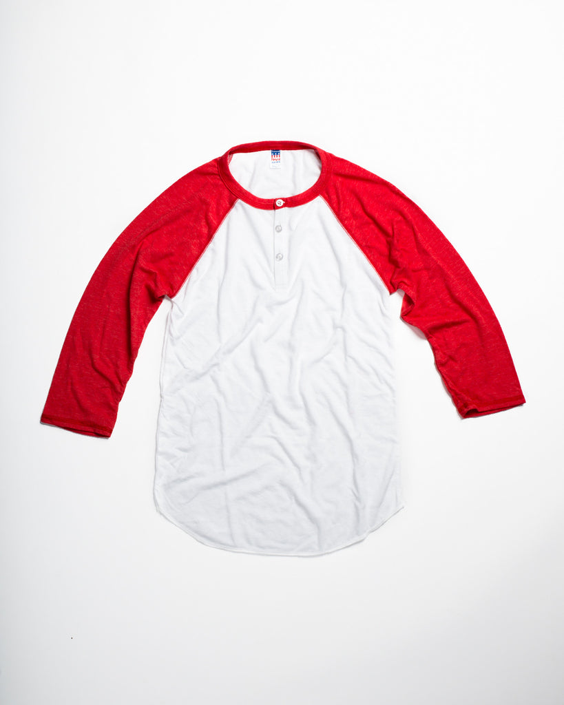 Think of the Henley as the multi-tool for your torso. Now normally multi-tools are smaller, colder, and a lot less flattering on your sweet bod, but give it a try and you'll agree. This cut can be worn alone for a cool long-sleeve, as an undershirt, or as a light mid-layer. That slight round neck looks fly on guys and girls alike, and the 3/4 sleeve keeps itself out of your way no matter what you're working on. The lightweight tri-blend breathes nicely, drapes nicely, and feels, uh, nicely. Wear them all year round, but good luck wearing them out.