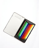 This set of twelve bright and beautiful solid pigment pencils pack a triple punch. Use them for fine or broad drawing, then just add water (carefully!) to blend with the subtle power of a watercolor artiste.