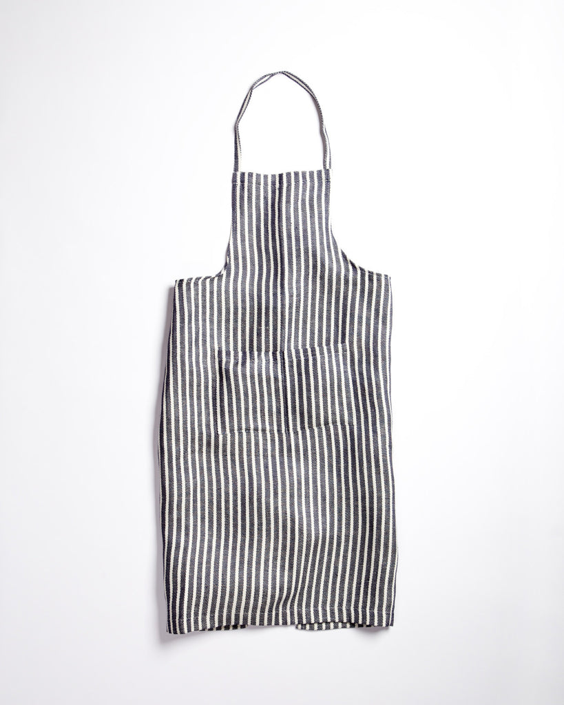 Turn on your smooth jams, light that special candle, and slip into something soft. The Fog Linen Work Apron is a sweet version of a classic, and we have strong feelings for it already. It is made by Japan's Fog Linen, a brand dedicated to comfortable, traditional, attractive and shorty-friendly textiles. They were kind enough to make up a batch of these simple linen neckband aprons for us in a bold wide stripe. The soft, mid-weight linen and wide cut make this apron a good bet for messy lighter duty work (and those of us who dig silky fabrics).