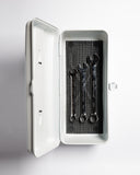 The newest home for cool tools is here from Trusco! The Shine Case features tough formed steel construction, smooth hinges, collapsible handle, lockable clasp, and a sneaky disco paint job. The perfect size for a traveling tool kit, these will also happily accept your most precious pens, curios, sewing supplies, dopp kit, or swanky lunch. The colors are great, with enough subtle glitz to make your other tools jealous. All in all, the Shine is a versatile and alluring trunk for your non-junk (or junk, we don't judge).