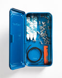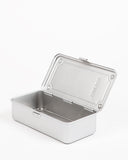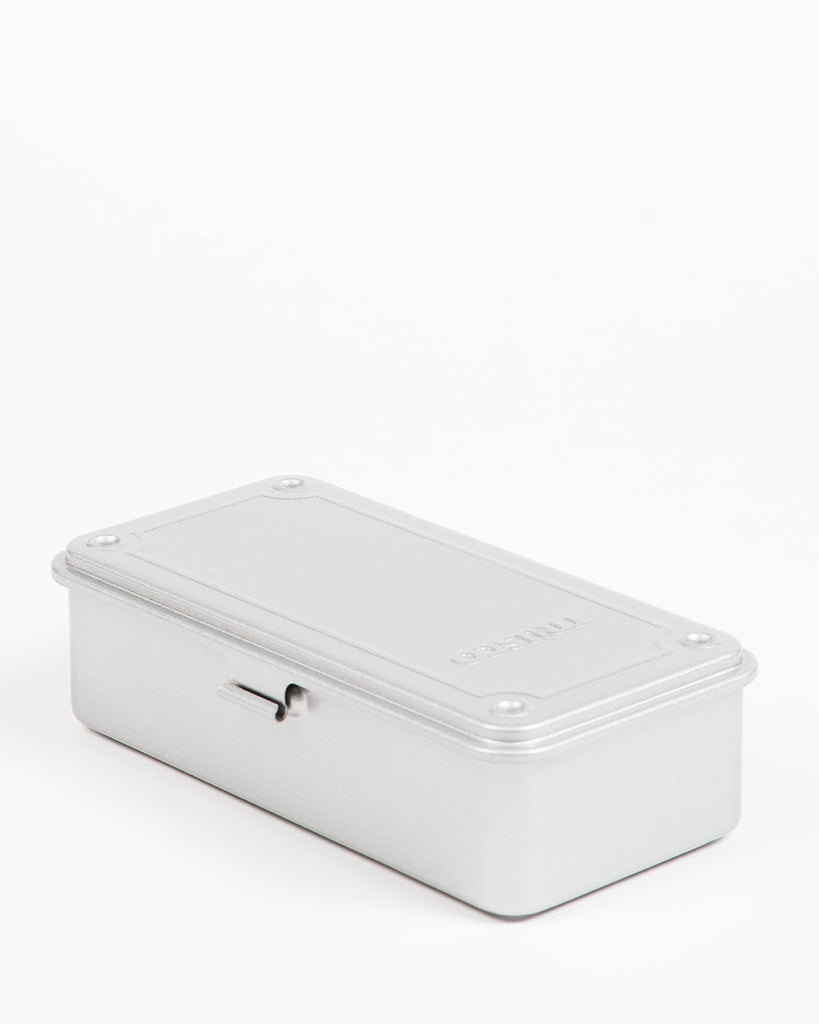 The Trusco family is fully rounded out with this totally tight trunk style tool box. Ideal for small and delicate object storage, or maybe carrying a long lean lunch. They're simple and kind of cute, but tough built. Formed steel can take a beating, and the indented top and little "feet" make them sturdily stackable. This is the kind of small parts organizer granddads have kicking around their workbenches that nobody really makes any more. A good fit inside either of the larger relatives , we're planning on using these to hold all kinds of things - from screwdriver bits to pencils to thread-bearing bobbins. Snap one up, and start enjoying their snappy closure and soothing storage potential.