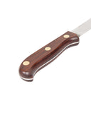Made from high carbon stainless steel (420 HC), the blade is precision ground, hand edged and honed resulting in a superior, long-lasting razor sharp cutting edge. Cryogenically treated blade substantially increases edge retention. The full tang is triple brass riveted to the handle, providing strength, perfect weight and balance. The good looking contoured handle is made from Cocobolo, a tropical hardwood known for its beauty and durability, which contains natural oils that resist wet environments. Looks good, feels good, works great? We'll drink to that.