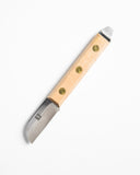 This simple shop knife has a lot of life in it. Built stout and strong and sharp as the day is long, it's ideal for all kinds of shop tasks. Made by the seasoned hands at R. Murphy Knives in Massachusetts, this knife features 11 gauge steel with a straight ground cutting edge and a full tang triple riveted to a hardwood handle. The short 2-1/8 inch blade is sharp and burly for cutting tough materials, and blunt tipped for added safety. The back of the tang is ground sharp (but not blade-sharp) for prying or scoring. Virtuously versatile!