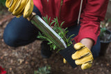 Unassuming at a distance, the Hori Hori is a veritable workhorse and an unflinching killer. It sports a blade curved enough for digging and soil-moving, long enough to catch taproots, pointed enough to pierce thick matted grass, and reach into tight spots. It has a blade edge for making clean cuts and a serrated edge for getting serious on roots or branches. All this, made of unrustable stainless steel, attached to a solid wood handle long and hefty enough to ensure good leverage, good grip and long life. It even humbly offers engraved measurements on the blade to help you gauge depth for seeding!
