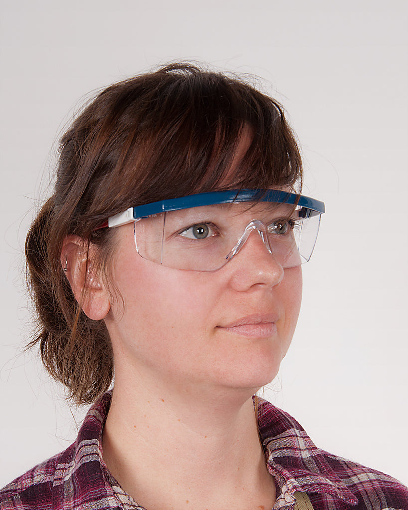 Basic wide-frame safety glasses with adjustable length and a little extra... something.