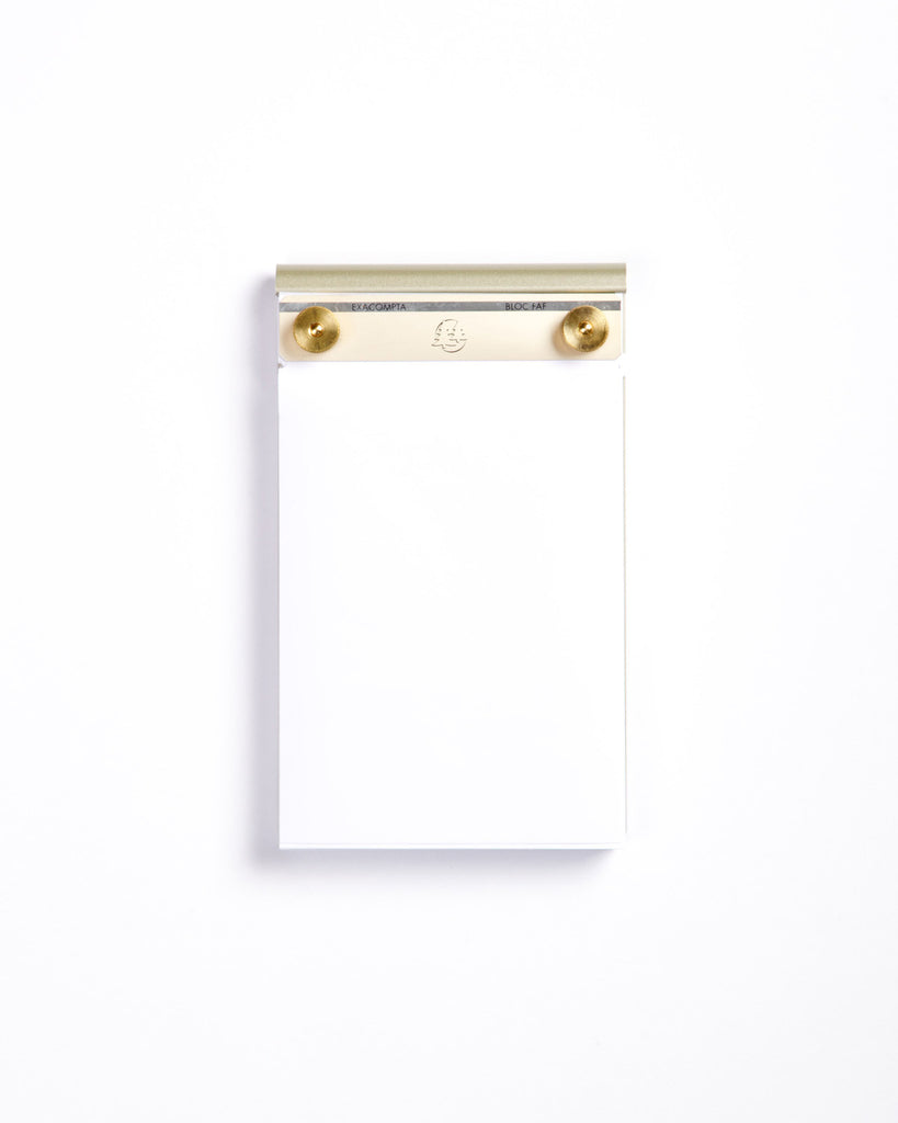 Made in the heart of Paris for over 50 years in a workshop built by Gustave Eiffel, (yes, that Eiffel) the Exacompta FAF Brass and Aluminum Desk Pad is practical and highly functional. It is called "FAF" – short for Feuille à Feuille, or "sheet of paper." Brass fasteners hold sheets of micro-perforated paper in place under an aluminum bar while rubber pads keep it from slipping around your desk. It's elegant, it's useful, it's a pretty ideal desktop notepad. Plus, knowing how to say Feuille à Feuille proves that you are fancy enough to own it.