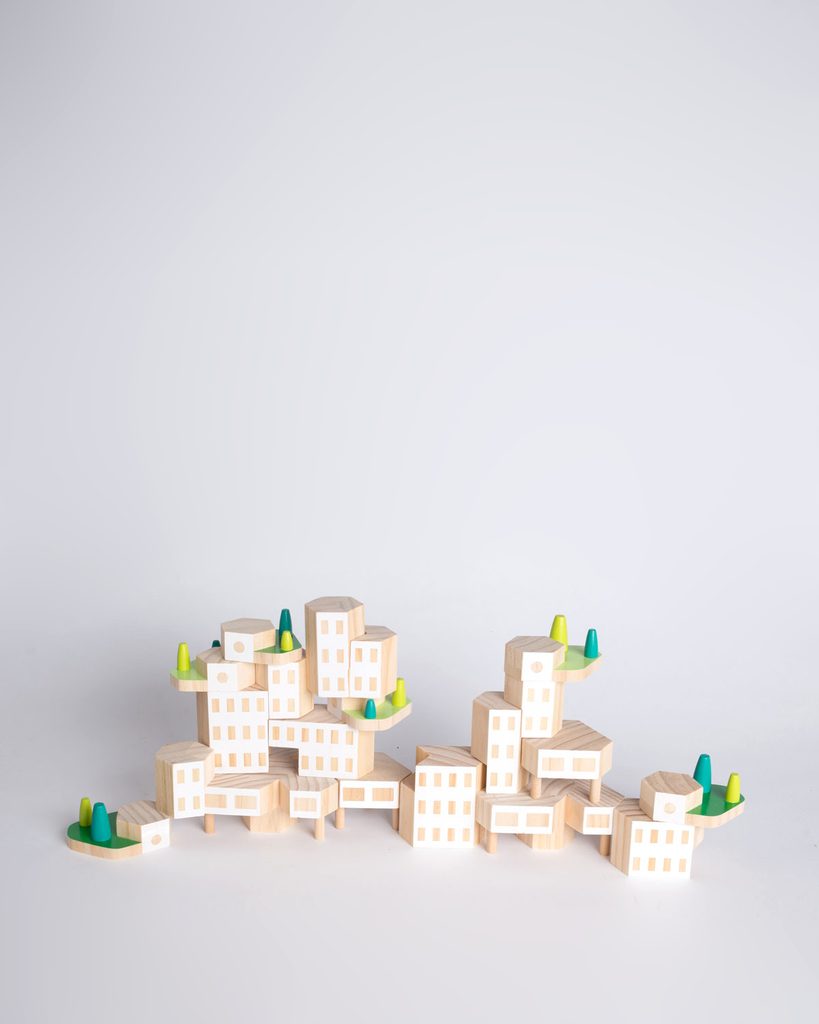 Whether you prefer the dystopian garden towers in Metropolis or the sprawling lawns and parks of the early UK urbanists, you can imagine your own ideal architecture over and over with this modular set for adults or kiddos.