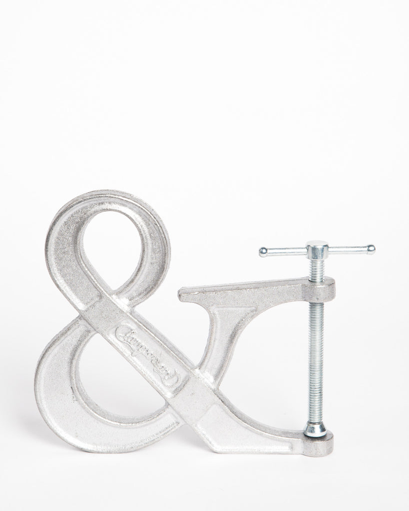 “I always envisioned the Clampersand as an ideal bookend for an open ended shelf," remarks Ruth. "I use them to clamp several books upright into a freestanding centerpiece. Or I simply stand it up by itself on a table. I'd recommend using it to clamp verbally associated objects together into some sort of visual pun: bacon and eggs, salt and pepper, turner and hooch. That sort of thing.”
