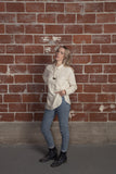 Because we usually work with small manufacturers, sizes vary from company to company and even batch to batch. We measure all clothing flat on the table upon arrival in our store to give you the most honest measurements. To determine which size is best for you, we recommend you measure a similar piece of your own clothing to compare to the measurements of the item you’re considering.