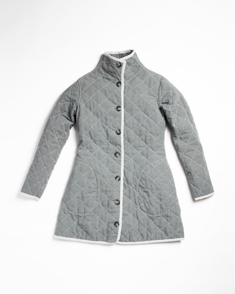 Beautiful foggy gray and cut for a country drive, these padded jackets are both cozy and distinctive. Reminiscent of both moving days and comfy couch sessions, the quilted cotton will keep you ready for anything and warm and relaxed. The longer cut and graceful silhouette are flattering, and the high collar cradles scarves and beats the wind. Made in the States out of 100% cotton, they're preshrunk, garment dyed, heavy stitched, and ready to love you all year round.