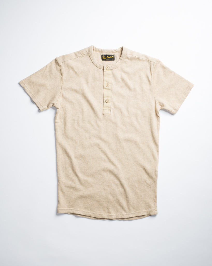 This dark grain-colored tee fits like a de-armed henley, with a slim fitting trunk and cat-eye button front. The material is thicker than even gourmet t-shirts normally offer, and the brushed cotton interior is like a present to your body. A little cozy, a little airy. Snuggle in and let your arms breathe free!