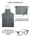 Choose one apron style to pair with your specs. Offer is specific to the Herringbone work and waist apron and the clear safety spectacles.